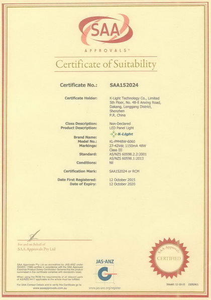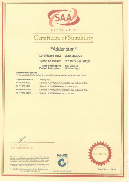 Our LED panels has passed SAA certification.